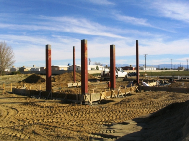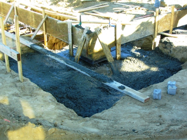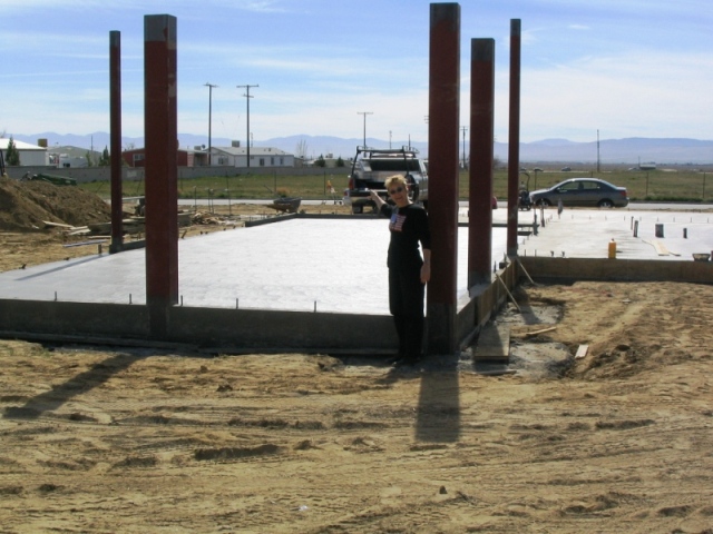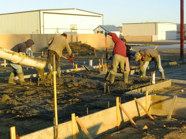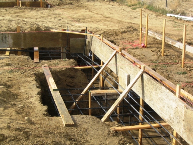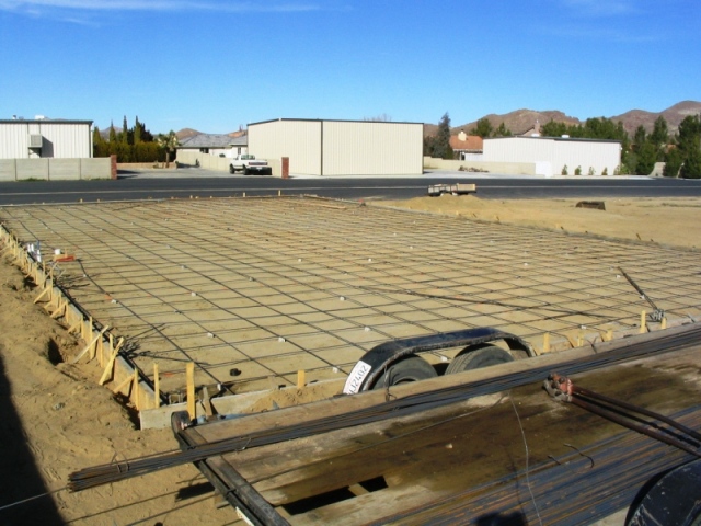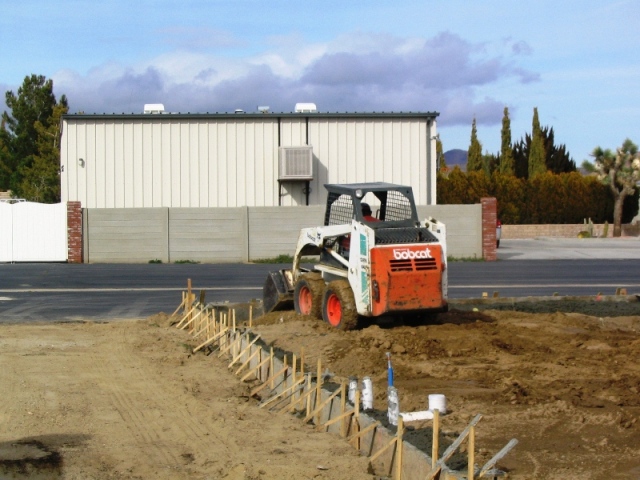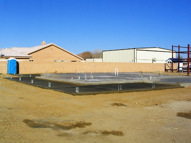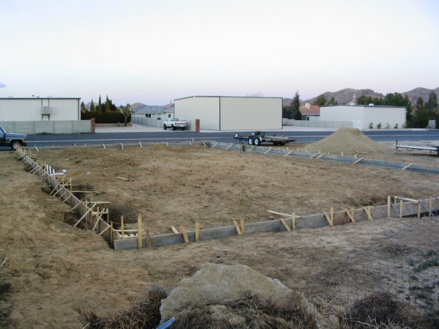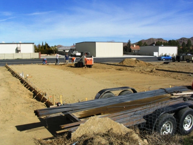The footings for the hangar were poured on Thursday, February 2, though I was sub-teaching school. Victoria was out for these pictures.