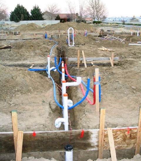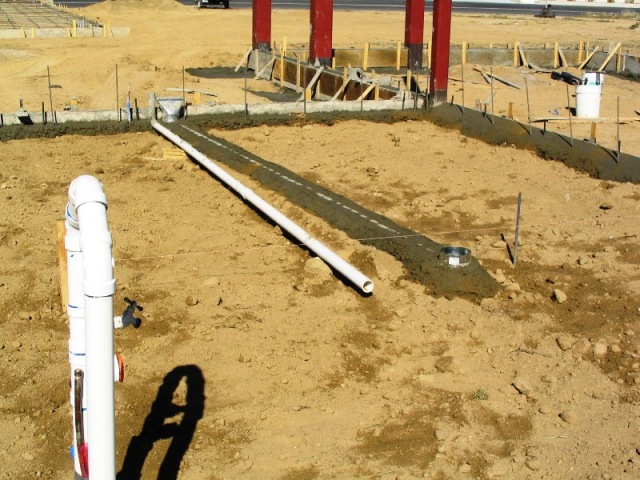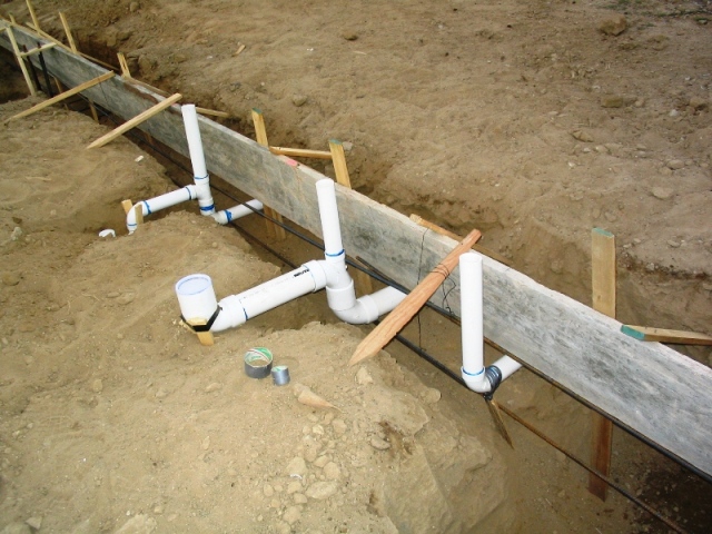 On Tuesday, February 1, John, Rudy and Alberto started the rough plumbing, and by the next day, all rough plumbing, including sewer lines with clean-outs, were in. MANY thanks to all three for placing a sewer stub-out on the north side of the house for the hangar plumbing to tie-into!!!!!!!!!!