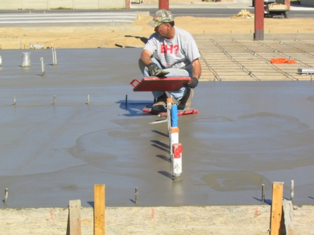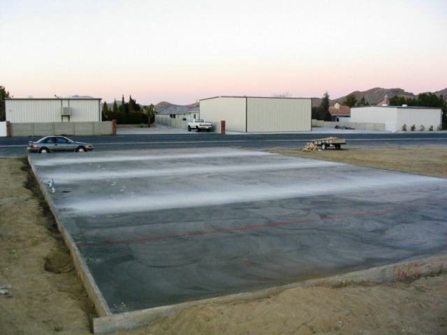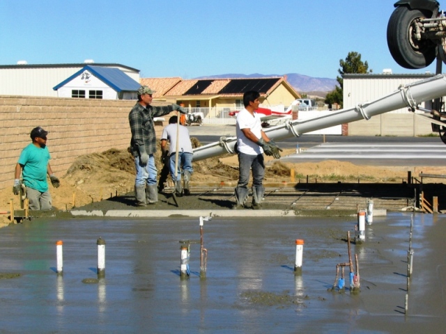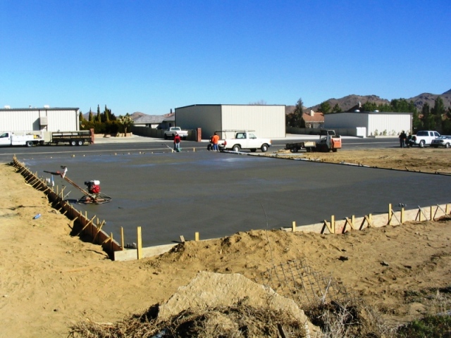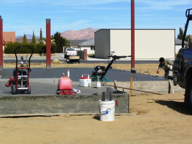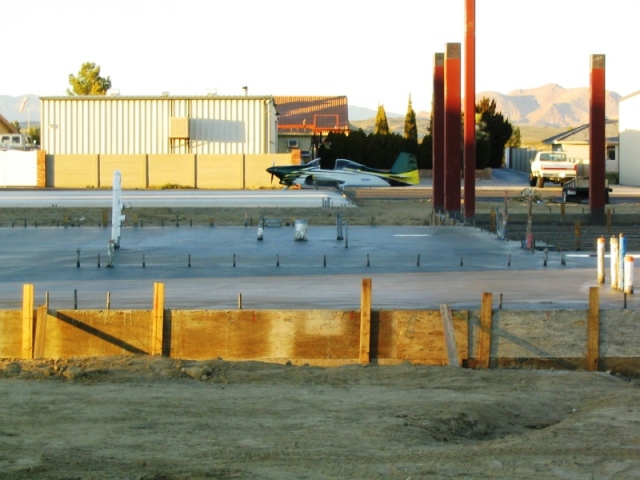 I arrived Friday morning to find the hangar pad now filled with cement, and by the end of the evening, the first saw cuts (for cracking) were cut into the pad. Todd Porter's crew also worked very well together;