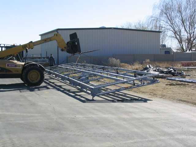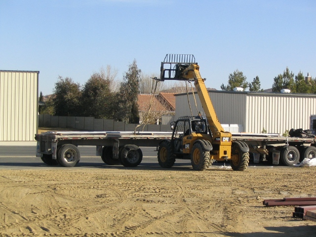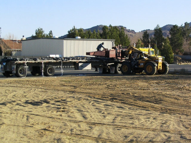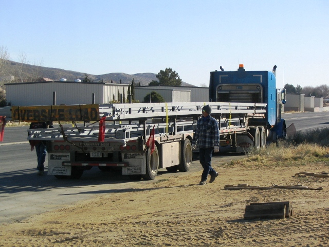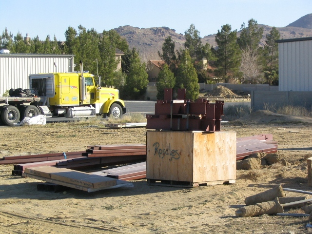 Thursday, February 16, the hangar and hangar door showed up on two big rig trucks; One truck from Idaho and one from Minnesota. It took MANY phone calls by Mike (of Bell Steel) to make that happen and we're very happy it all worked out. Mike's crew will start erecting the hangar, built by R&M Steel, on Monday.