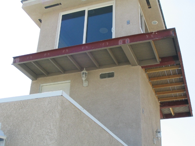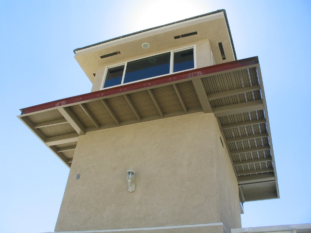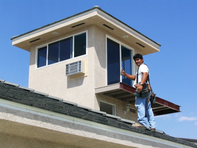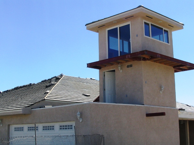 Alberto, Bryan & Rudy were here for a day; they finished up the roof caps, installed the tower A/C and rolled the patio on top of the garage with the final (rubber floor) color-coat.