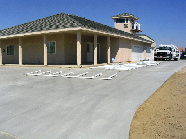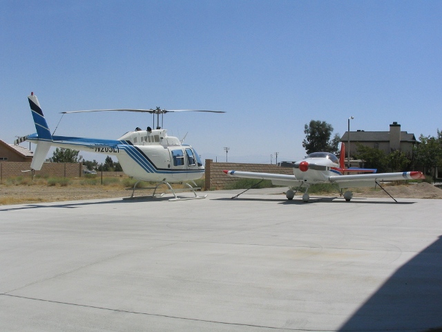 Tuesday, We got green! As in, a green sticker that gives Southern California Edison the go-ahead to hook-up power to the house!!!!! Bryan had to connect the hangar power wires at the electrical box before the inspector arrived so my hangar is no longer hot-wired to the street (i.e. can't open hangar door to get planes out...) Before he did that, I pulled planes from the hangar, and parked one next to a helicopter on my neighbor's ramp.